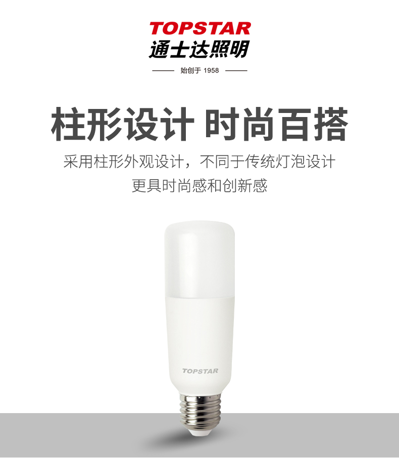 采用柱形外觀設(shè)計(jì),不同于傳統(tǒng)燈泡設(shè)計(jì),更具時(shí)尚感和創(chuàng)新感