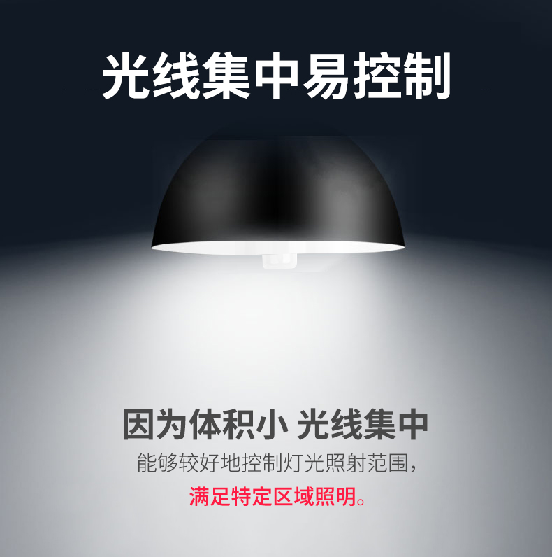 因?yàn)轶w積小,光線集中,能夠較好地控制燈光照射范圍,滿足特定區(qū)域照明。